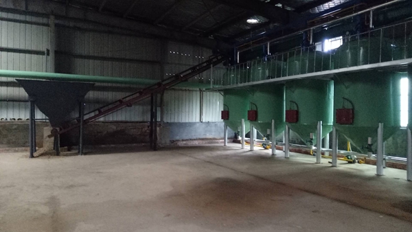 3、白土蒸烘: 浸泡萃取過的廢白土在浸出罐內(nèi)由直接蒸汽經(jīng)過下壓、上蒸后脫掉殘油及水分,達到干燥程度后由人工打開卸料門將廢白土放入出料絞龍,經(jīng)出料絞龍輸送至車間外廢料場。